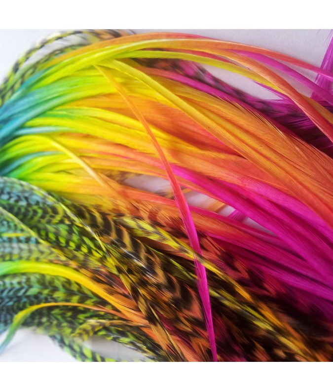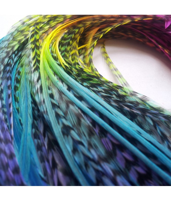 Vous recevrez un duo de plumes L multi-colorées, d'une longueur de 20 à 24cm.