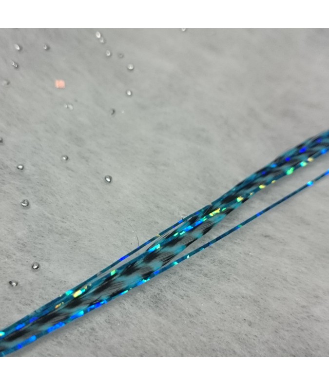 Vous recevrez une plume rayée turquoise, d'une longueur suppérieure à 24cm, à laquelle est fixée trois fins cheveux d'anges extrêmement brillants, de plus de 30 cm! Ces cheveux d'anges, d'utilisation en coiffure professionnelle, peuvent être lavés, lissés, séchés!