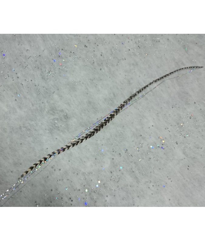 Vous recevrez une plume noire et blanche rayée, d'une longueur supérieure à 30cm, à laquelle est fixée trois fins cheveux d'anges extrêmement brillants! Ces cheveux d'anges, d'utilisation en coiffure professionnelle, peuvent être lavés, lissés, séchés! Largeur de cette plume est de 2 à 4 mm. Avec une perle de fixation par plume de la couleur de votre choix, blond, chatain, brun aubrun, brun ou noir!