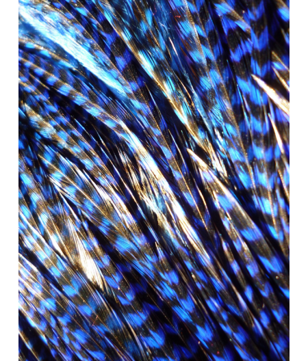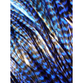 Vous recevrez une plume bleu roi rayée, de taille xl, longueur comprise entre 24 et 30 cm.