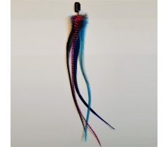 Un assortiment de plumes sur clip L, comprenant une plume rose, une plume bleu turquoise, une plume violette et une plume rayée noire et blanche, dont la moitié du lot en rayé ! Un assortiment girly girly ! Taille L de 20 à 25 cm pour cheveux courts, en plumes larges et ébouriffées ou fines.